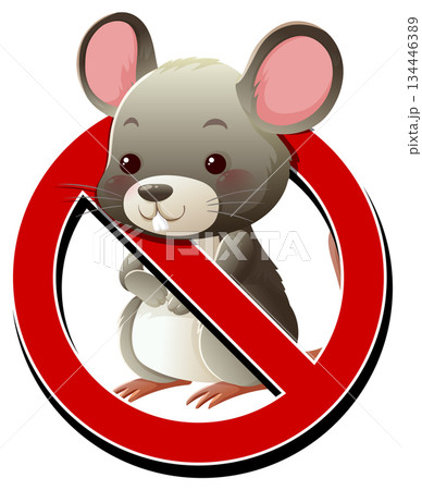 Cartoon Mouse with Red No Symbol Vector Illustration