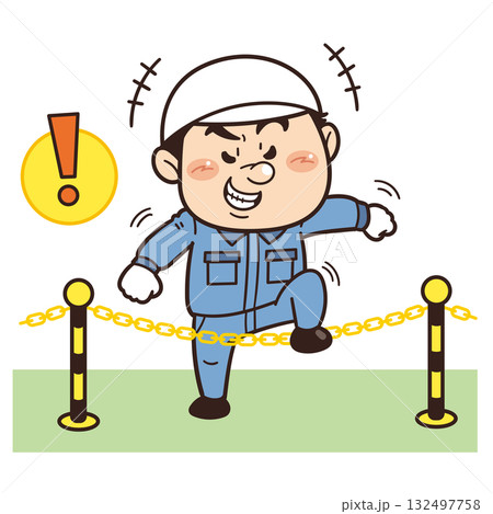 安全柵を乗り越えて侵入しようとする工場・現場の作業員イラスト|不安全行動・不安全状態・リスク・危険