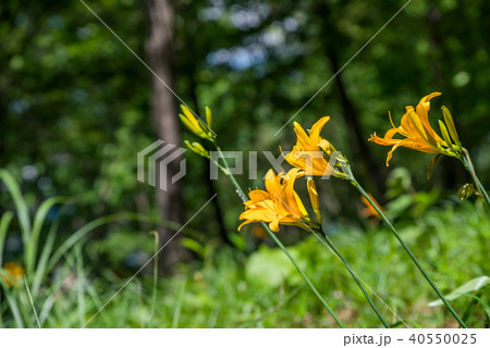 長野県茅野市 夏の車山高原の黄色いニッコウキスゲの花