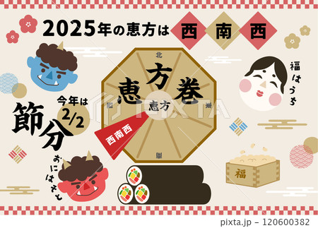 2025節分_恵方巻_方角イラスト素材