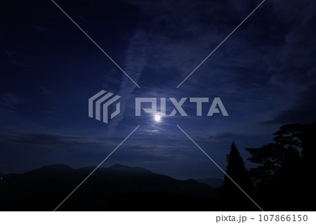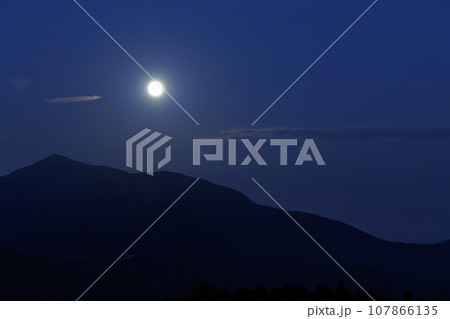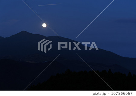 城ヶ岳の上の中秋の名月(大分県由布市 蛇越展望所)