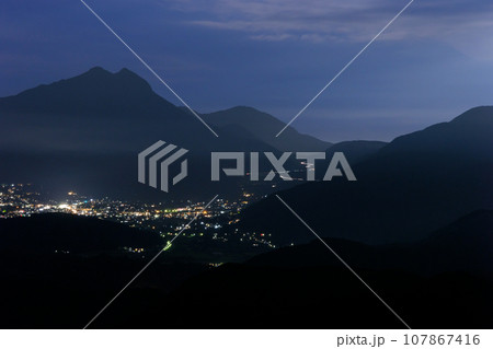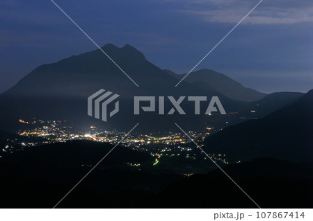 蛇越展望所から見る由布岳と由布院の夜景(大分県由布市)