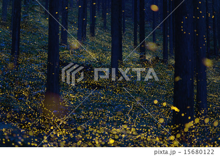 森林に舞い上がるヒメボタル(鳥取県日野郡日南町福万来)
