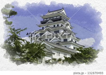 水彩画風 福山城 リニューアル天守閣 鉄板張り 広島県福山市