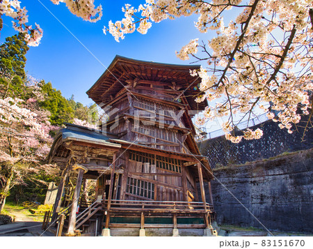 桜咲く春の会津さざえ堂
