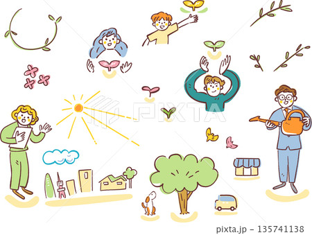 暮らしと街のイラスト/人々の生活・地域社会・サステナブルな街づくり
