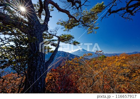 紅葉の本社ヶ丸から見る富士山