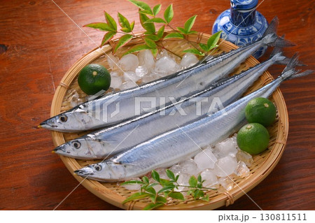 秋のサンマ、さんま、秋刀魚、食材イメージ、鮮魚、秋の味覚、すだち。