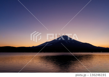 美しい夕空の富士山が湖面にも踊る