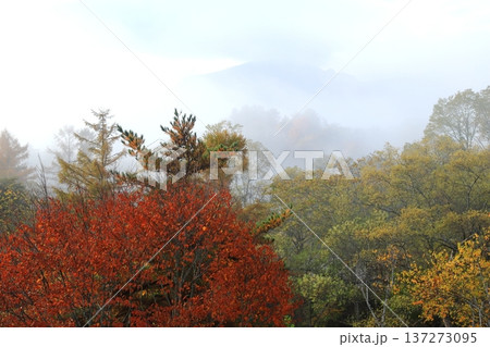 磐梯朝日国立公園 裏磐梯五色沼湖沼群るり沼の気嵐の風景
