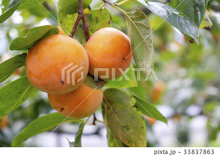 たくさん収穫した柿の果実 perming 写真素材