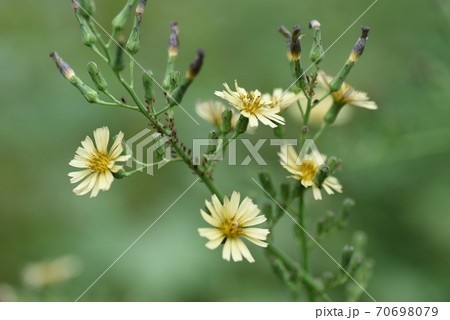 晩秋の野に咲く、淡く黄色い草花のアキノノゲシ