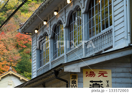 紅葉の新潟県魚沼市奥只見銀山平温泉・白銀の湯