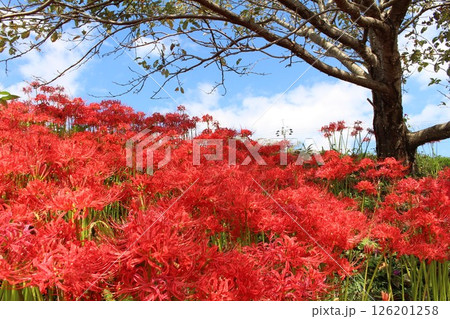 鮮やかに咲く赤い彼岸花(曼珠沙華)の花
