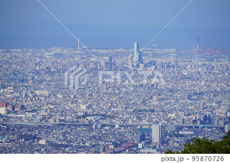秋の早朝・パノラマ展望台から望む大都会大阪