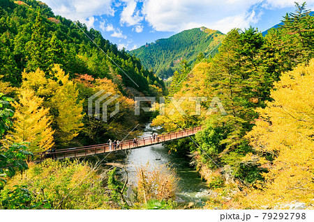 東京都あきる野市 秋川渓谷 石舟橋のイチョウの紅葉