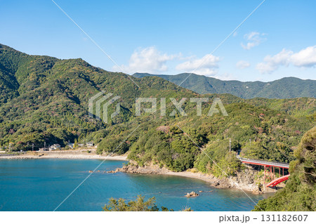 三重県南伊勢町 阿曽浦への親子大橋の見える休憩所からの秋の贄湾の眺め