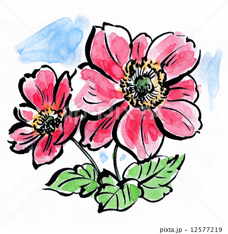 Anemone hupehensis var. japonica シュウメイギクの水彩イラスト