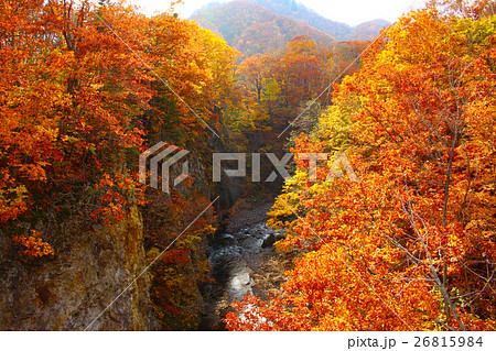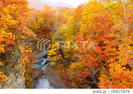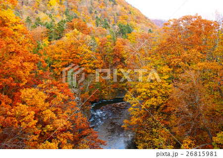 北海道の絶景 定山渓時雨橋からの紅葉風景