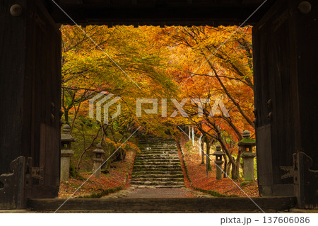 秋の福岡県朝倉市 紅葉の秋月城下町 秋月城跡(黒門)
