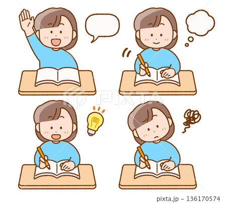 授業を受けるこども(女の子)イラストセット