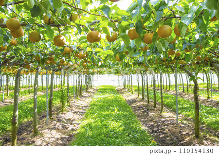 果樹園に実った梨の果実 鳥取県 赤梨