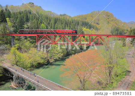 小又川橋梁を渡る秋田内陸線新観光車両「秋田マタギ号」