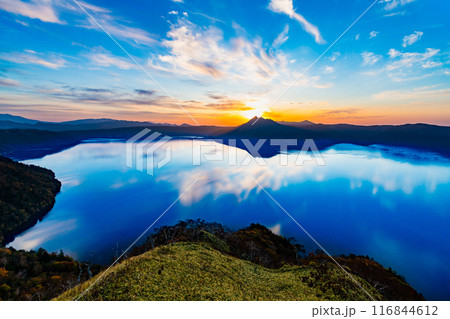 北海道 紅葉の雄阿寒岳と阿寒湖