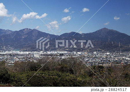 秦野市の風景 弘法山公園から望む秦野市街と富士山