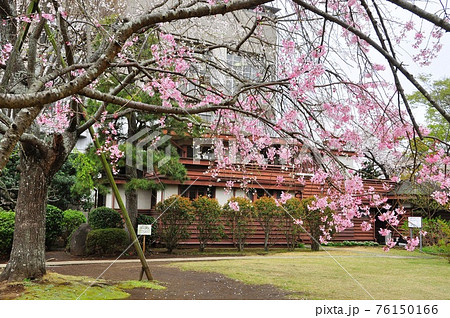 神奈川県藤沢市 秩父宮記念体育館に隣接する旧近藤邸とシダレザクラ