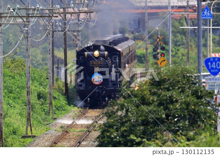 踏切を通過する蒸気機関車(秩父鉄道)