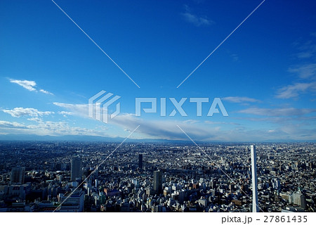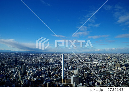 冬晴れの東京 俯瞰 秩父連山を臨む風景 広角 b
