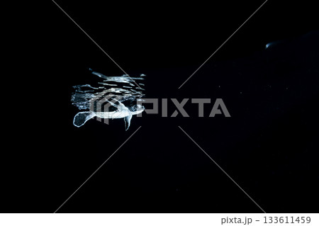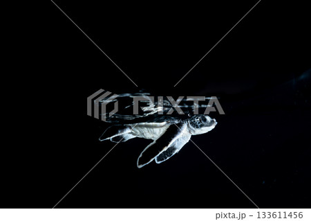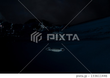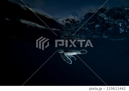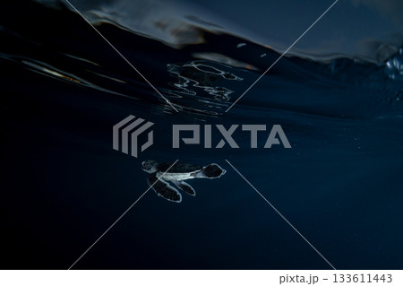 孵化して海を泳ぐアオウミガメの赤ちゃん 小笠原 東京都