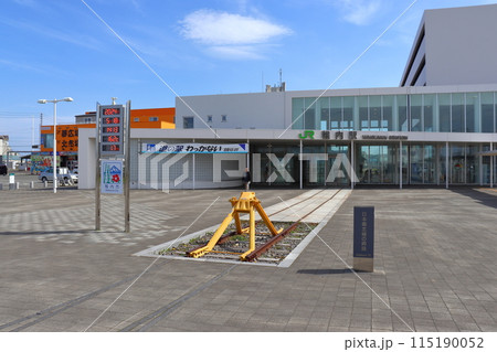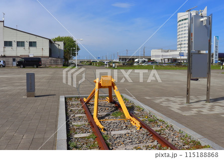 JR稚内駅の最北端モニュメントと 旧稚内桟橋駅方面の風景