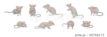 Gray Mouse Small Animal with Rounded Ears in Different Pose Vector Set