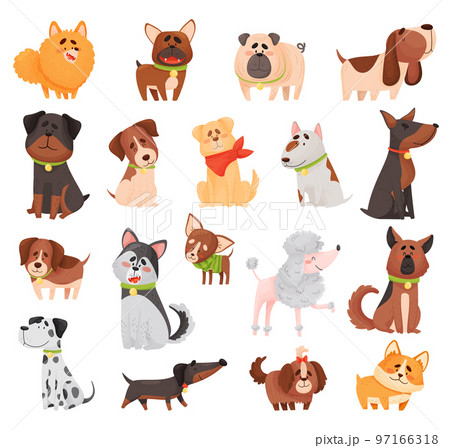 Cute Dogs and Puppy Pets of Different Breed Big Vector Set