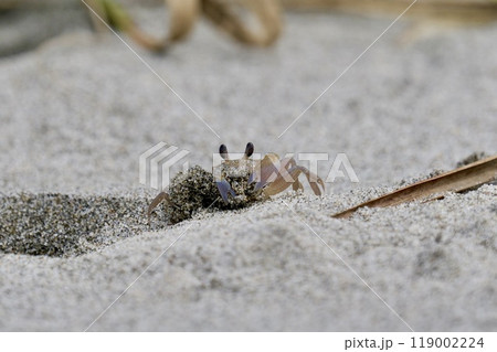 巣穴を作るために掘り返した砂を抱えて運ぶスナガニの写真