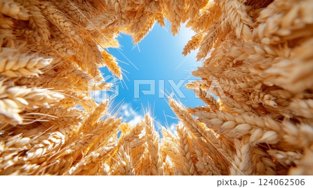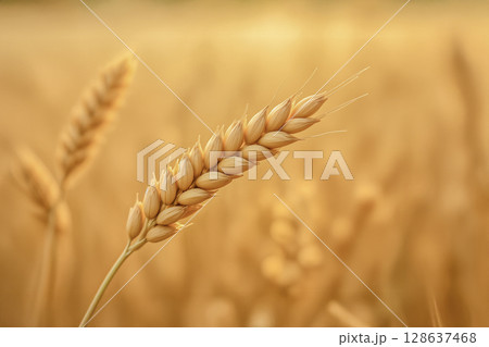 Golden ears of wheat swaying gently sunlit field, their grains full and ripe, creating a sense of abundance and harvest season