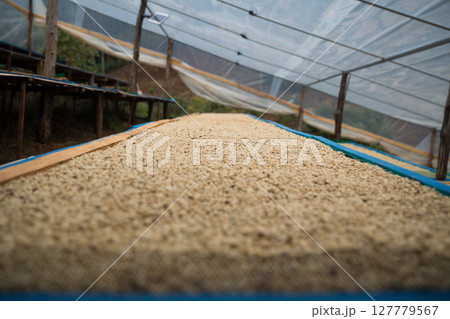 Farmer concept harvest ripe coffee seed robusta arabica berry close up fresh green leaf bean picking orange crop red yellow berries raw plant tree smart farm growth blur background eco organic garden