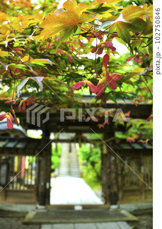 モミジの種とお寺の門