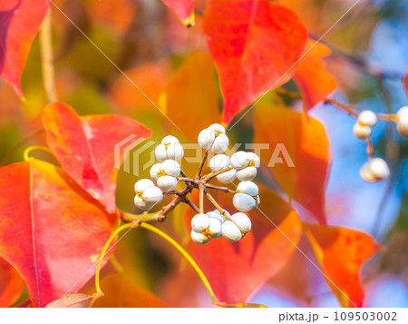 色づいたナンキンハゼと白い実