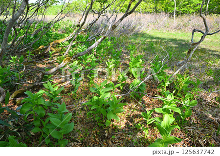 田代湿原 林床のコバイケイソウの群生 初夏の風景 群馬県