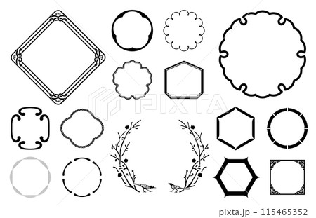 A retro Japanese style circular frame set with a rice, wheat and rice plant motif. A luxurious gold design.