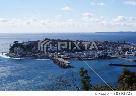 伊豆下田の爪木崎海岸、後方は稲取の町
