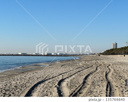春、快晴のいなげの浜(白い砂浜)