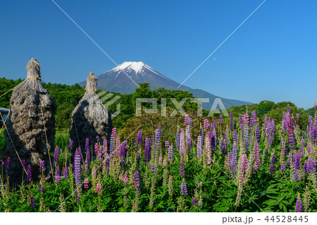 山梨県南都留郡忍野村よりルピナスと稲積と富士山