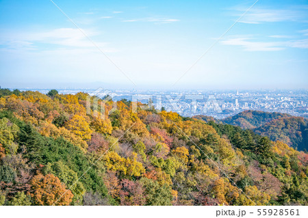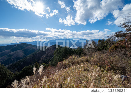 高尾山 秋の登山道 稲荷山コース あずま屋から都心方面の見晴らし