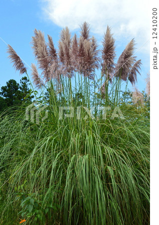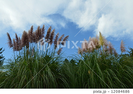 秋の空・シロガネヨシ(パンパスグラス)(埼玉県比企郡ときがわ町)