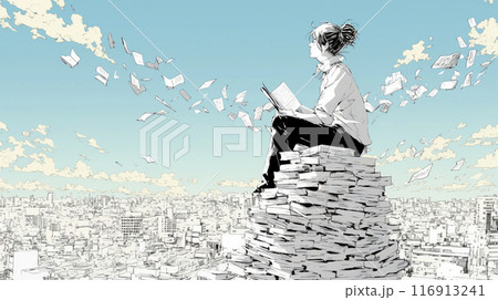 情報が積み上がる書類の塔