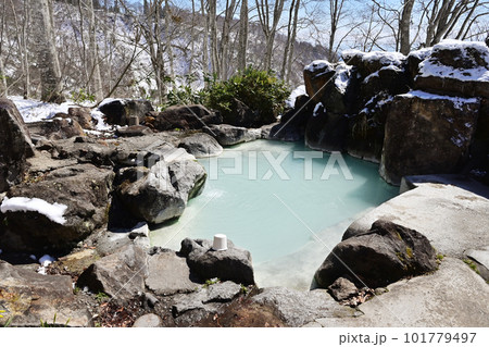 露天風呂の風景 湧き出る源泉の湯 黄金の湯 のんびり温泉 野天風呂 温泉イメージ 新潟観光名所